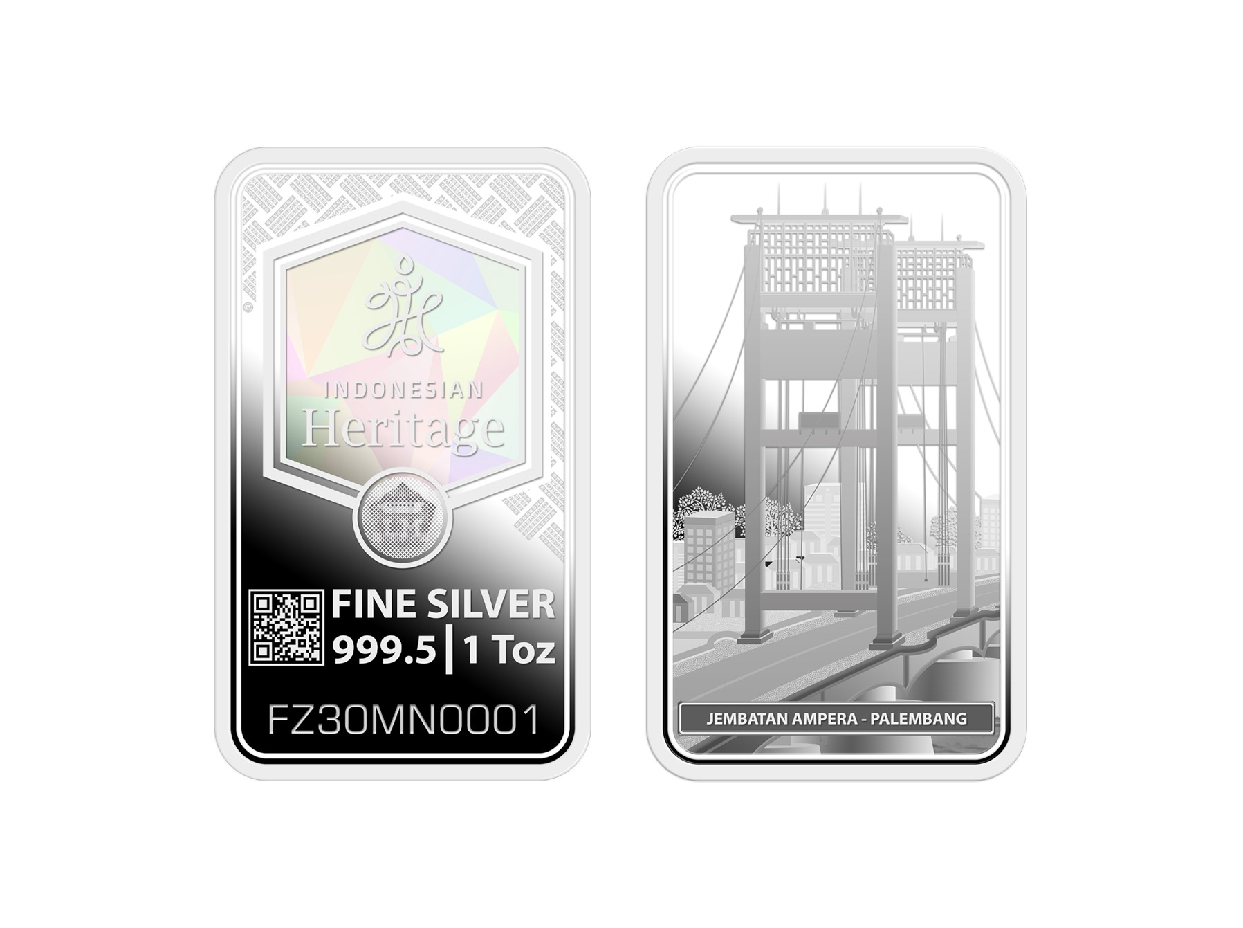 Produk emas batangan Perak Indonesian Heritage menghadirkan visualisasi elegan yang melambangkan kemewahan dan nilai abadi. Dibuat menggunakan teknologi modern dengan standar kualitas tertinggi, produk ini dilengkapi fitur keamanan terkini untuk menajmin keaslian.